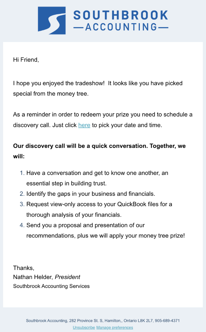 Create a campaign for our first tradeshow with a clear focus on lead generation. The goal is to attract skilled trades professionals during the event while also engaging our existing newsletter audience. We wanted a simple way to capture contact information, follow up quickly and turn tradeshow traffic into real sales conversations.